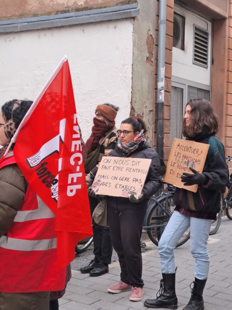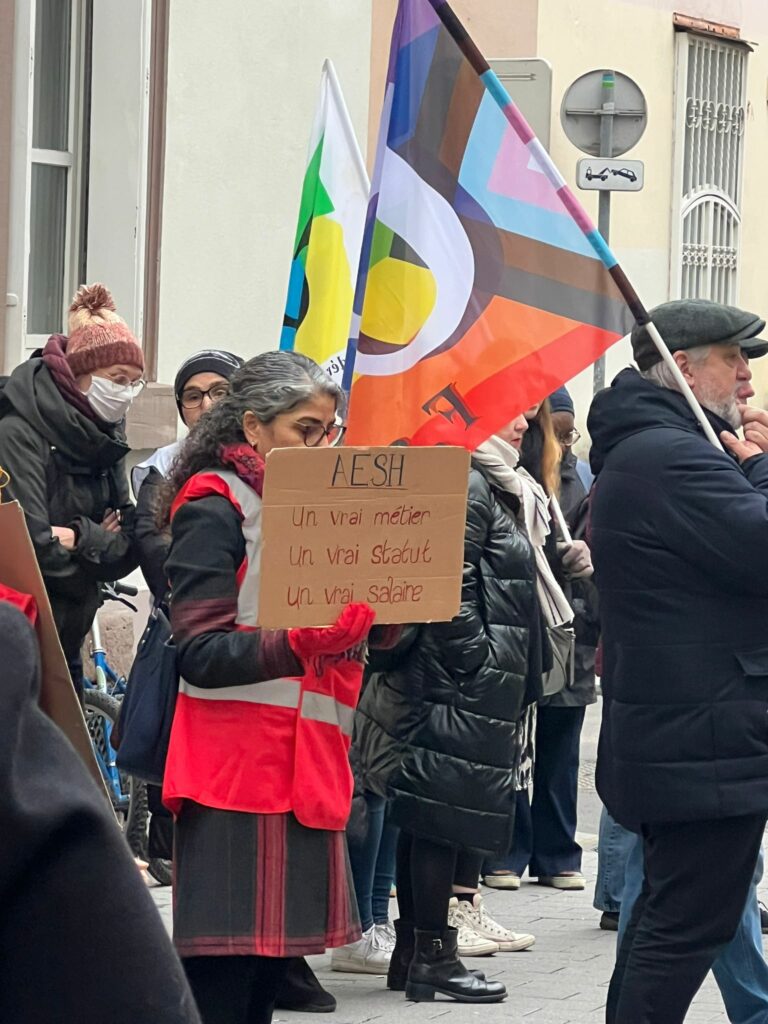 Trop d’enfants ne sont pas accompagnés à Strasbourg sur la pause méridienne. Certaines AESH qui souhaitaient augmenter leur quotité de travail se sont vu refuser la possibilité d’accompagner des élèves sur ce temps par manque de budget. Pour d’autres, seules 4h ont été proposées cette année au lieu des 8h de l’an passé, générant une baisse considérable de leurs revenus.